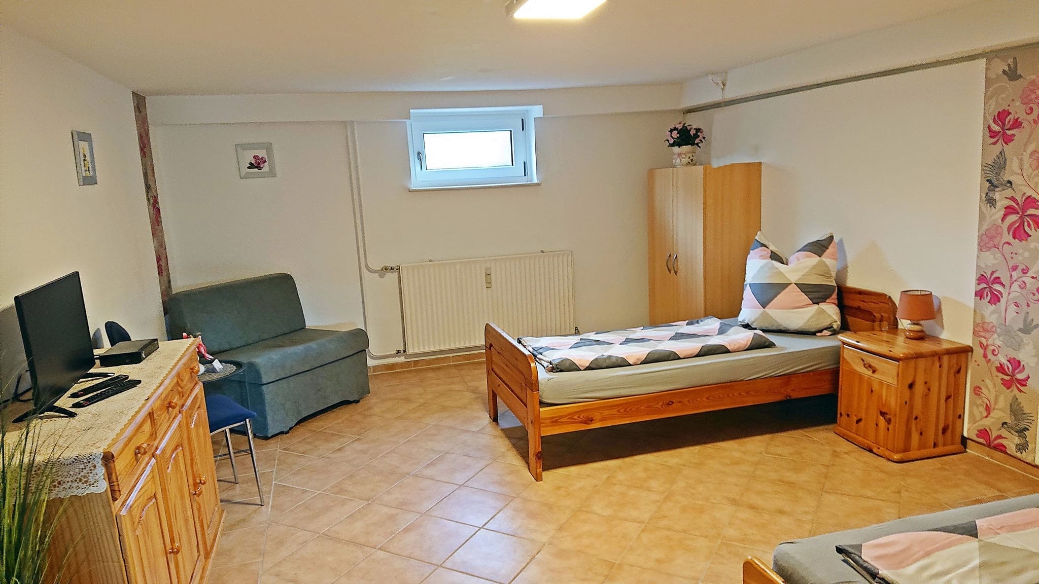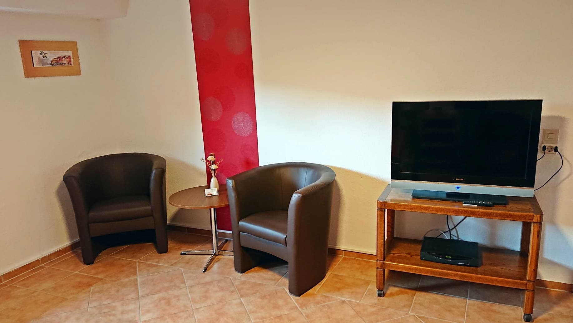 Fernseher und Sitzgelegenheit im Zimmer
